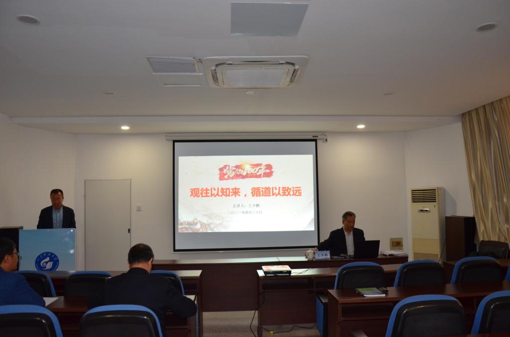 4月30日,校党委副书记王少鹏以“观往以知来,循道以致远”为题,为williamhill中国官方网站全体教职工讲党史学习教育专题党课。党课由学院直属党支部书记、院长王靖磊主持。