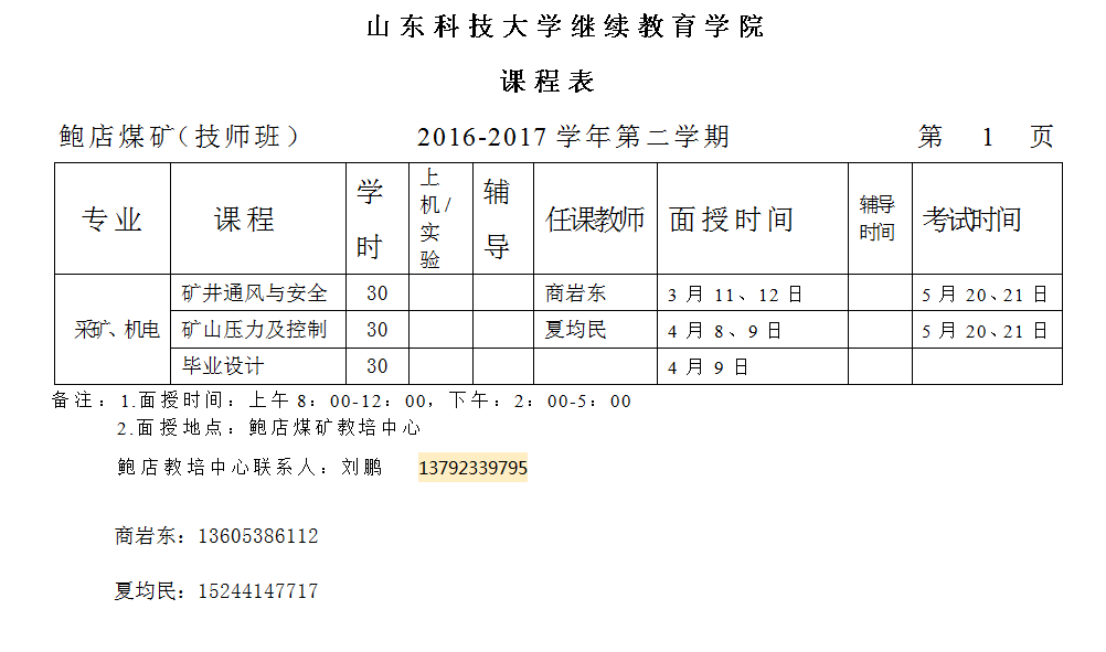 兖矿集团鲍店煤矿技师班面授通知